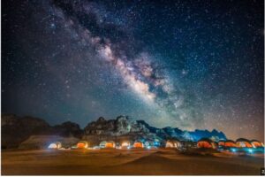 Akomodimi në kampin tuaj të shkretëtirës me 5 yje, dhe ​​shijimi i darkës dhe duke kaluar natën nën qiellin e mbuluar me yje të Wadi Rum.